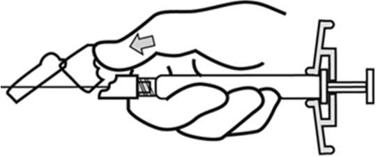 6. Havasını gidermek için, takılmış olan iğne ile birlikte enjektörü dik pozisyona getiriniz.Piston çubuğunu dikkatli bir şekilde ileri iterek enjektörün havasını gideriniz.